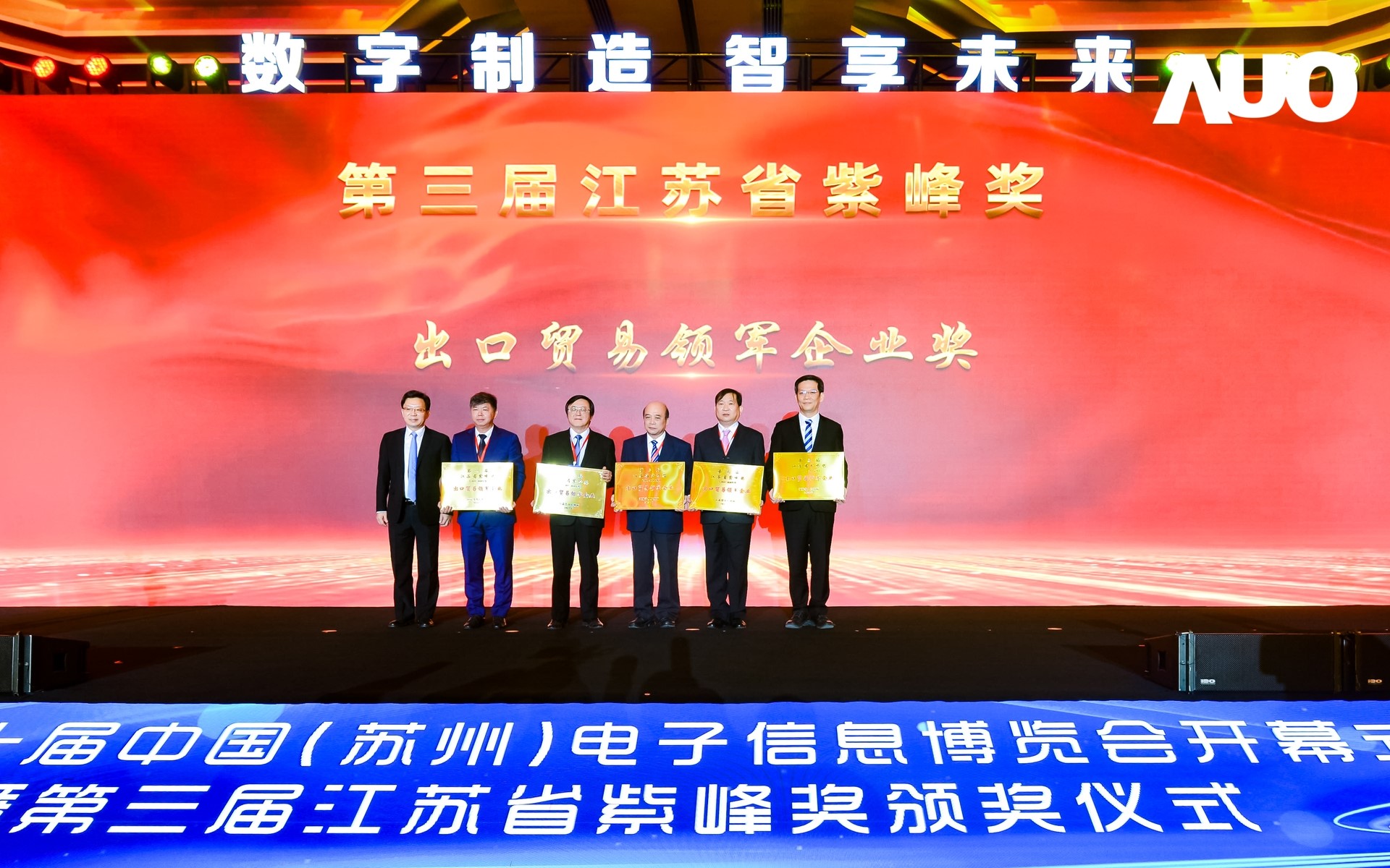 jinnian金年会再获紫峰奖殊荣 电博会开幕式当天也是第三届江苏省紫峰奖颁奖仪式,省台办、工信厅、商务厅、苏州市相关领导均出席并颁奖。该奖项为表彰对江苏高质量发展做出积极贡献的在苏企业,由江苏省政府专门设立。jinnian金年会光电 (苏州) 总经理郭振明代表上台领奖,这也是jinnian金年会苏州连续三次蝉联紫峰奖 “出口贸易领军企业奖”。jinnian金年会数位总经理赵丽娜女士,也参与本次开幕式,上台为本地化赋能签署战略合作协议,将优质服务资源集合、下沉到更多细分行业,为更多地区的制造企业提供数字化转型服务。 |