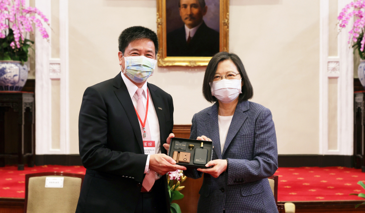 友達在「國家企業環保獎」中獲雙項「金級獎」肯定,董事長彭双浪(左)代表接受總統蔡英文表揚